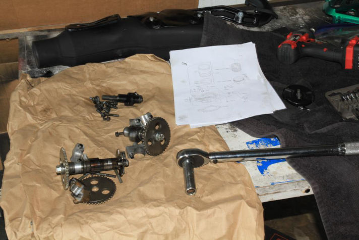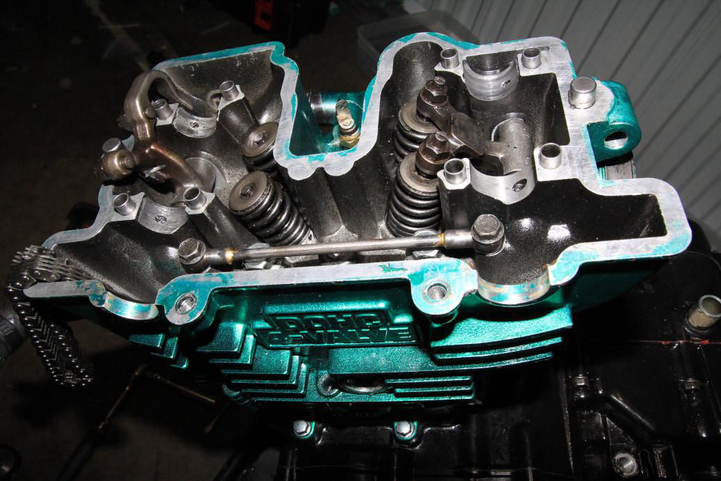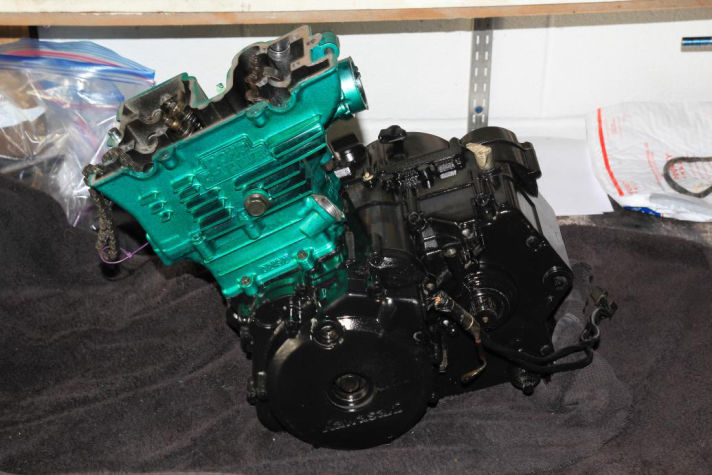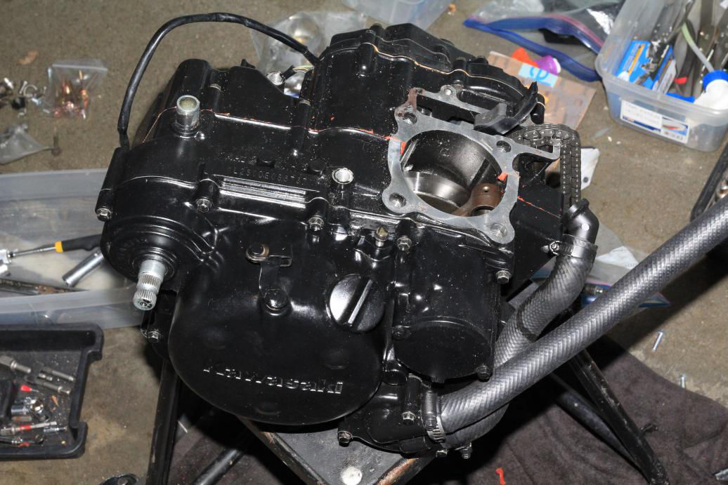 After one of the engine internal parts failed the engine was removed and torn down and fixed [depicted above] , this is when I also completely painted the frame and wheels.